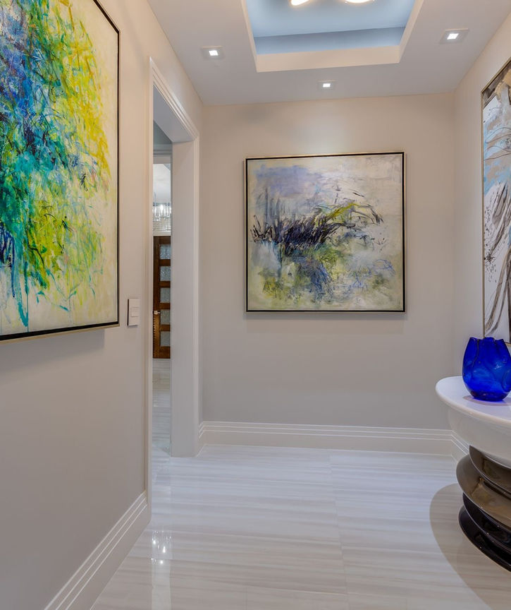 Her paintings don’t rely on recognizable forms. Instead, they explore mood, movement, and the space between clarity and ambiguity. Through layers of texture, subtle gestures, and intentional restraint, each work invites the viewer into a quiet moment of reflection open to personal meaning.