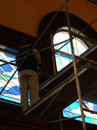 Stained Glass Windows in the newly built Church were fabricated and installed by Mila Apperlo and Stevan Stanisic.